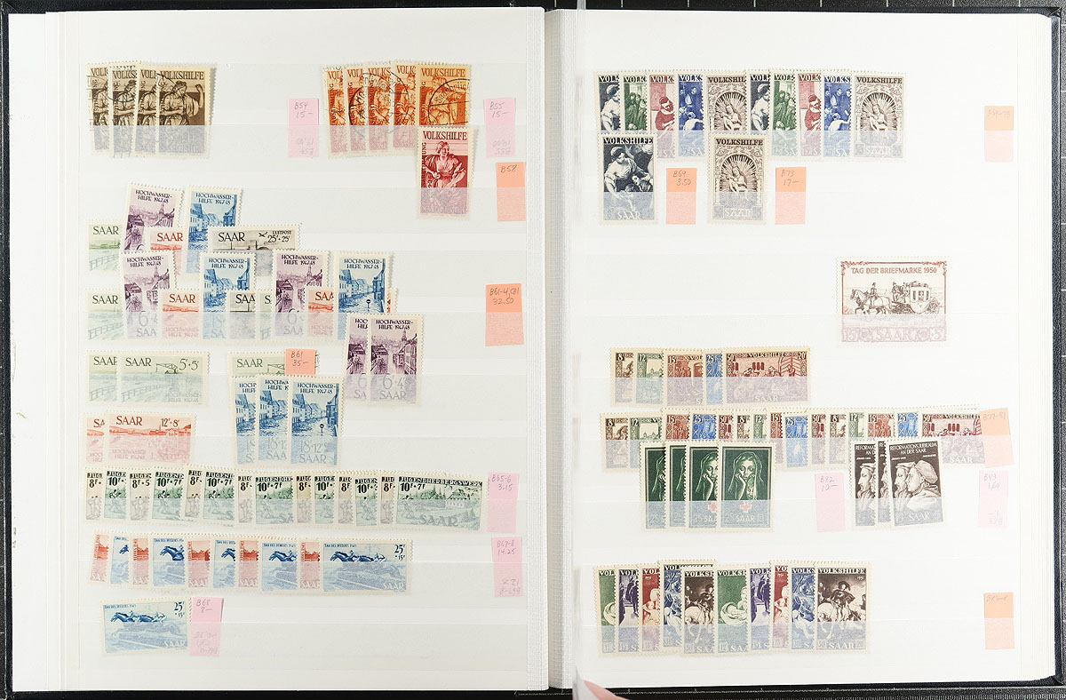 Nice accumulation of "back of the book", of the French issues over a 30+ year period starting in the 1920's. The semi-postals includes mint sets #B16-B22 and #B30-B36 and a mint single of #B42 (over $325.00 catalogue value here), plus used singles of #B54-B55 (5 each), along with a scattering of sets and singles. The airmails are fairly complete, noting #C11 (3x used), finishing with a nice run of overprinted official stamps as well as the "Coat of Arms" design (noting #O27 used and #O38). Quantities range from 1-15 of a type, with the items nicely identified by their Scott catalogue values. The catalogue values are older and a touch higher than current values, but there is still lots of value here. Noted many nice cancel amongst the used. All housed in a black covered 16-page Uni-Safe stockbook. Estimate =