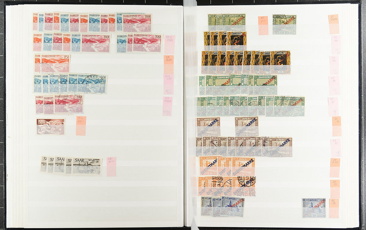Nice accumulation of "back of the book", of the French issues over a 30+ year period starting in the 1920's. The semi-postals includes mint sets #B16-B22 and #B30-B36 and a mint single of #B42 (over $325.00 catalogue value here), plus used singles of #B54-B55 (5 each), along with a scattering of sets and singles. The airmails are fairly complete, noting #C11 (3x used), finishing with a nice run of overprinted official stamps as well as the "Coat of Arms" design (noting #O27 used and #O38). Quantities range from 1-15 of a type, with the items nicely identified by their Scott catalogue values. The catalogue values are older and a touch higher than current values, but there is still lots of value here. Noted many nice cancel amongst the used. All housed in a black covered 16-page Uni-Safe stockbook. Estimate =