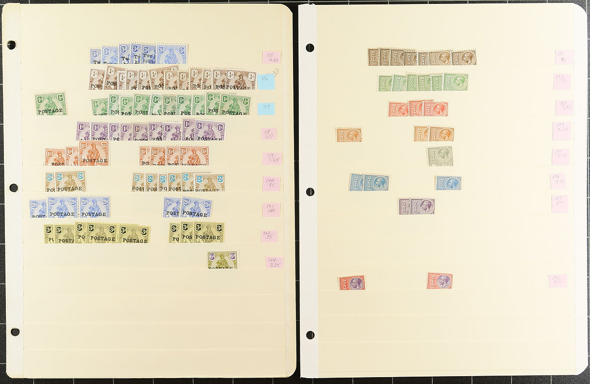 Part A: Mint Malta stock "QV to King George VI". 11 manila stockpages which are strongest in the King George V and VI reigns, noting a number of "Self Government" overprints, with lots of $3-$10 singles and better such as #220-222. Up to 15 of a type, neatly organized with Scott number and catalogue value. Most are hinged, and few faults are to be expected. Estimate =