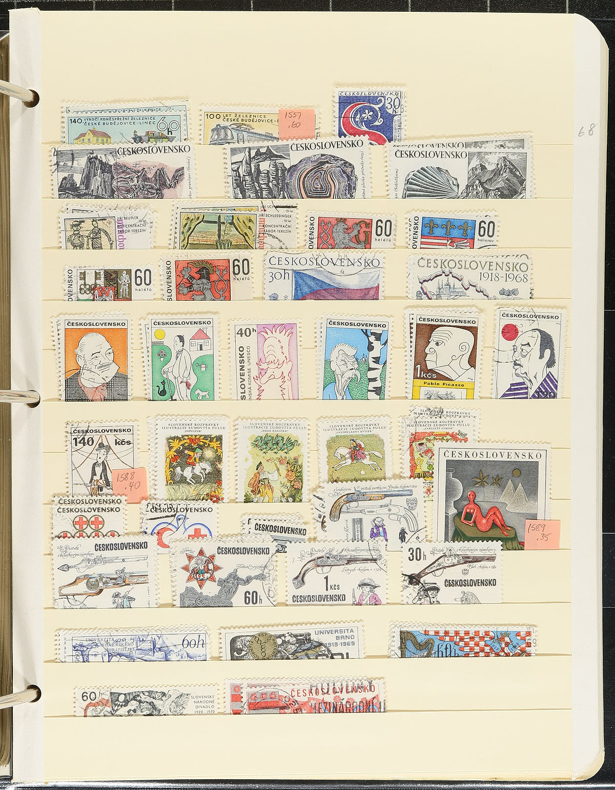 An extensive three binder stock with a wide range of Czech issues. Volume 1 is a used stock (more like a collection in places), chronologically mounted in 39 manila stockpages from the early issues up to the early 2000's, plus a good offering from the "back of the book". Volume 2 is a binder with 42 manila stockpages filled with large blocks (up to folded panes) of mint issues from the 1960's to early 1990's (obviously there is heavy duplication here). The final binder is a stock of mostly used Bohemia and Moravia (again with lots of "back of the book"), from the occupation and war era on manila stockpages. There isn’t much material here with significant individual value, but there is extensive coverage, light to moderate duplication, good condition, well organized and perfect for building on (plus there are over 100 manila stockpages!). Estimate alue =