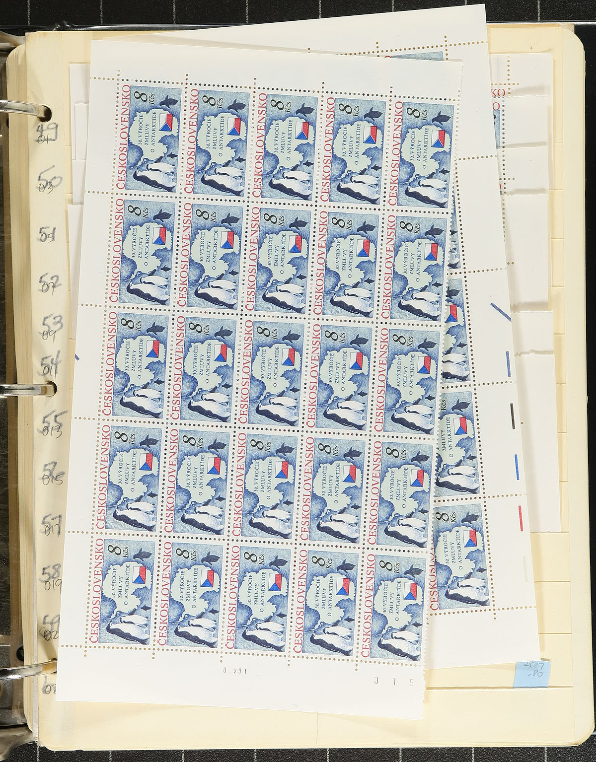 An extensive three binder stock with a wide range of Czech issues. Volume 1 is a used stock (more like a collection in places), chronologically mounted in 39 manila stockpages from the early issues up to the early 2000's, plus a good offering from the "back of the book". Volume 2 is a binder with 42 manila stockpages filled with large blocks (up to folded panes) of mint issues from the 1960's to early 1990's (obviously there is heavy duplication here). The final binder is a stock of mostly used Bohemia and Moravia (again with lots of "back of the book"), from the occupation and war era on manila stockpages. There isn’t much material here with significant individual value, but there is extensive coverage, light to moderate duplication, good condition, well organized and perfect for building on (plus there are over 100 manila stockpages!). Estimate alue =