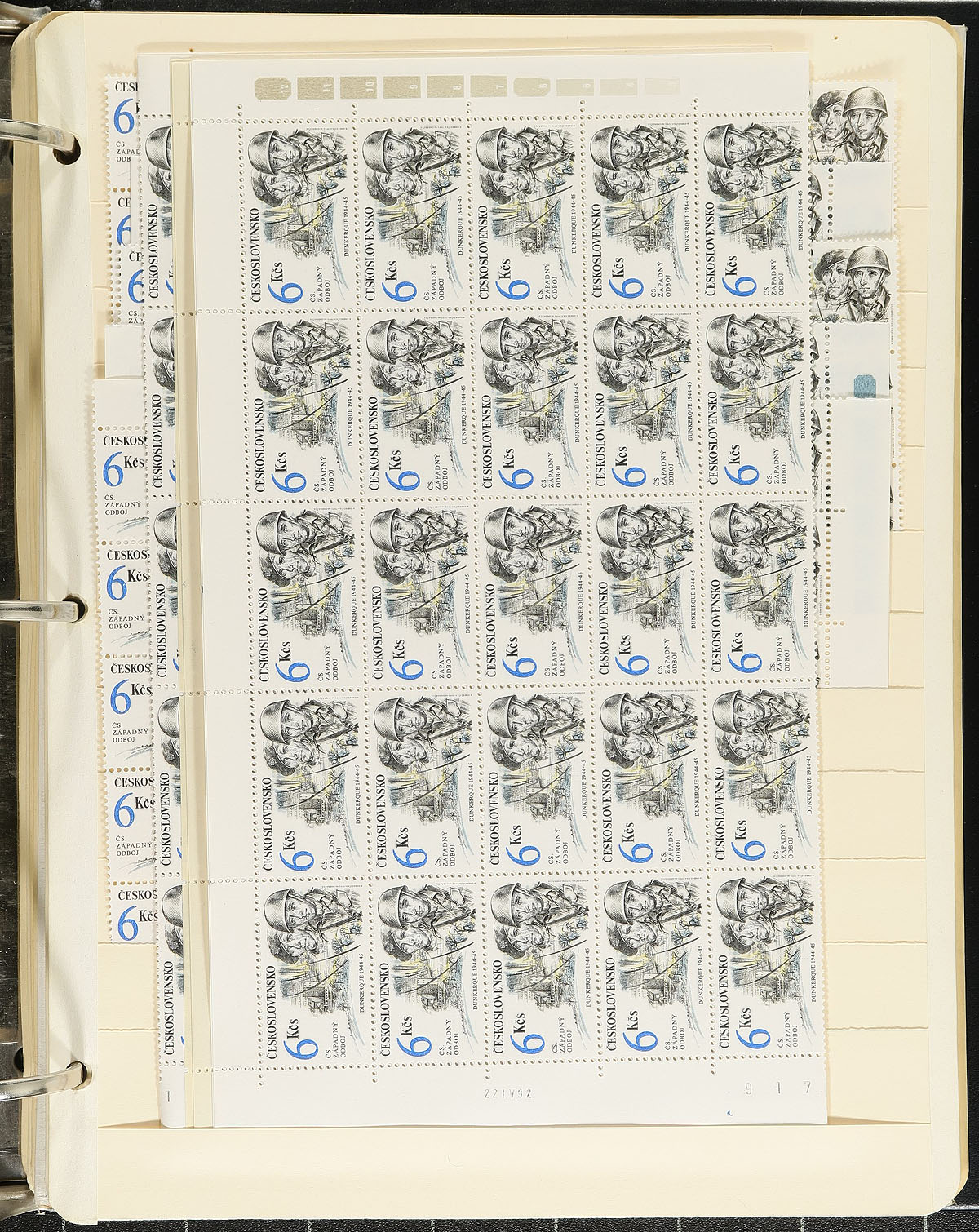 An extensive three binder stock with a wide range of Czech issues. Volume 1 is a used stock (more like a collection in places), chronologically mounted in 39 manila stockpages from the early issues up to the early 2000's, plus a good offering from the "back of the book". Volume 2 is a binder with 42 manila stockpages filled with large blocks (up to folded panes) of mint issues from the 1960's to early 1990's (obviously there is heavy duplication here). The final binder is a stock of mostly used Bohemia and Moravia (again with lots of "back of the book"), from the occupation and war era on manila stockpages. There isn’t much material here with significant individual value, but there is extensive coverage, light to moderate duplication, good condition, well organized and perfect for building on (plus there are over 100 manila stockpages!). Estimate alue =