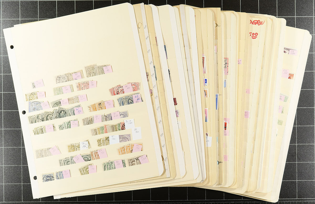 A broad accumulation of used Luxembourg, with issues up to 2005, nicely arranged on 23 manila stockpages in a padded blue "Uni-Safe" three-ring binder. Thorough throughout, including an extensive "back of the book". Lots of cancel potential, the condition is better than normally seen. Much is identified and priced by (older) Scott, but the majority of the heavy work has been done for you. Individual items with catalogue values up to $10.00 each. Not often seen material, especially in the modern era. Estimate =