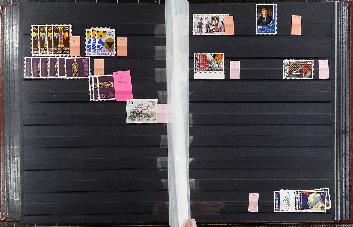 Lovely mint stock in a pair of large stockbooks with issues up to 2005. There is substantial coverage of sets and singles with up to $10.00 catalogue value, with the occasional better item lurking (e.g. #O20). The stamps are a mix of hinged and never hinged, which have been separated by the collector. There are up to 20 of a type, but most have 1-5 copies. The stockbooks have black pages, the main one being a 64-page brown cover "Uni-Safe" the other having 48 pages and a red cover "Importa", both with acetate strips and glassine interleaves (easily retailing over $125.00). Estimate =