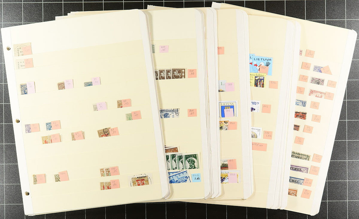 Three phases of Lithuanian philatelic history in a collector’s mint and used stock, on 21 manila stockpages. Starts with five pages of Memel with overprints on German and French stamps, including a good offering of air mails. Very little duplication here, and some nice cancels amongst the used. The next section is the independent issues up to the start of WWII, with ten pages (including some semi-postals and airmail) with some multiples and quantities of up to 20 issues. The balance is the post-USSR independence, with a bit of mint, and scattered issues up to about 2010 (and light duplication). A fascinating Baltic offering. Well organized and excellent condition. Estimate =