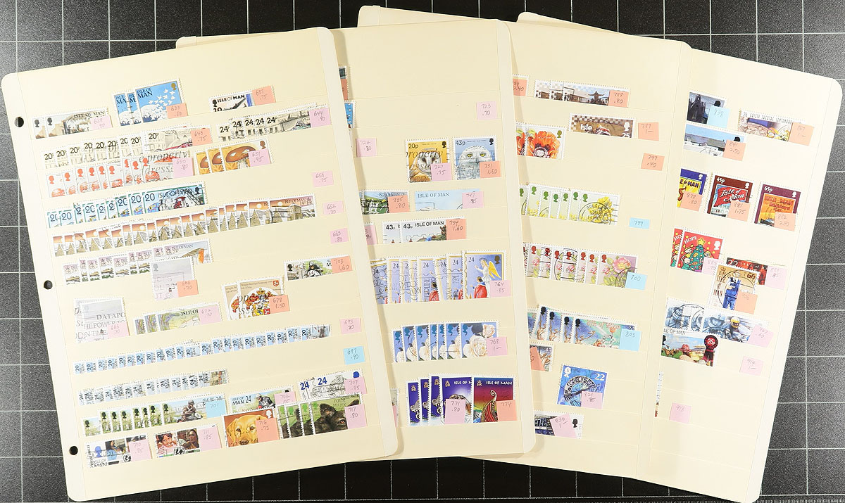 What differentiates this collector’s 32 manila stockpage duplicates from most holdings of IOM is (1) they all appear to be postally used and (2) coverage is strong into the early 21st century. There is substantial coverage throughout, including the many rates found in each of their issues. This is not the kind of material that can be single sourced. To top it off, the collector has meticulously organized everything and added tags with Scott numbers and (2018) catalogue values. Up to 20 of a type, thousands of stamps in total and substantial catalogue value. Don’t wait for the next one. Estimate =