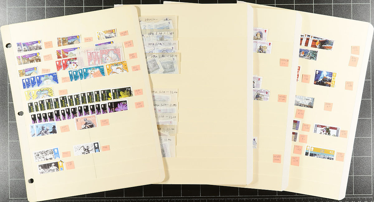 What differentiates this collector’s 32 manila stockpage duplicates from most holdings of IOM is (1) they all appear to be postally used and (2) coverage is strong into the early 21st century. There is substantial coverage throughout, including the many rates found in each of their issues. This is not the kind of material that can be single sourced. To top it off, the collector has meticulously organized everything and added tags with Scott numbers and (2018) catalogue values. Up to 20 of a type, thousands of stamps in total and substantial catalogue value. Don’t wait for the next one. Estimate =