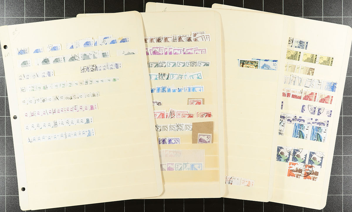 PRC and ROC, separated by country and then mint separated from used (the strength of this holding), this two-country collector’s stock covers much of the 20th century. The PRC includes 2 manila stockpages of mint and 11 of used. The mint Taiwan (ROC) is spread over 5 pages and the used over 11. No specific areas of strength, but there are $5-$10 stamps throughout. There is some potential to find nice cancels. Duplication is mild to moderate and condition is generally good. A total 29 stockpages. Estimate =