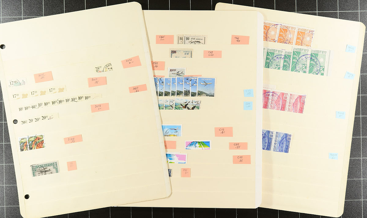 PRC and ROC, separated by country and then mint separated from used (the strength of this holding), this two-country collector’s stock covers much of the 20th century. The PRC includes 2 manila stockpages of mint and 11 of used. The mint Taiwan (ROC) is spread over 5 pages and the used over 11. No specific areas of strength, but there are $5-$10 stamps throughout. There is some potential to find nice cancels. Duplication is mild to moderate and condition is generally good. A total 29 stockpages. Estimate =