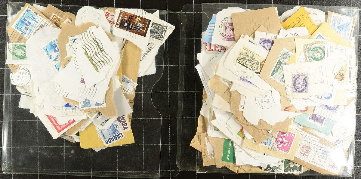 A pair of banker’s boxes filled with philatelic fun, the balance of a consignment. While there is a wide range of material here, at first glance, the strength appears to be Canada and Great Britain. There are three older Harris albums with a worldwide collection with thousands of stamps. There is a 16-page stockbook and a couple other binders. We noted 150 Canada private cachet first day covers from the 1960's-1970's (lots of "Schering" in various sizes and some "Elliot-Marion" plus more). An old accordion file has an assortment of modern worldwide, with pockets of mint Canada & GB. There are a couple of nice older tins filled with loose stamps, and one box is heavily filled with worldwide kiloware (most on paper). This is the perfect lot for the collector who wants to hunker down with a project over the winder or for a club that wants a few meetings with lots of material to pile through. Estimated value =