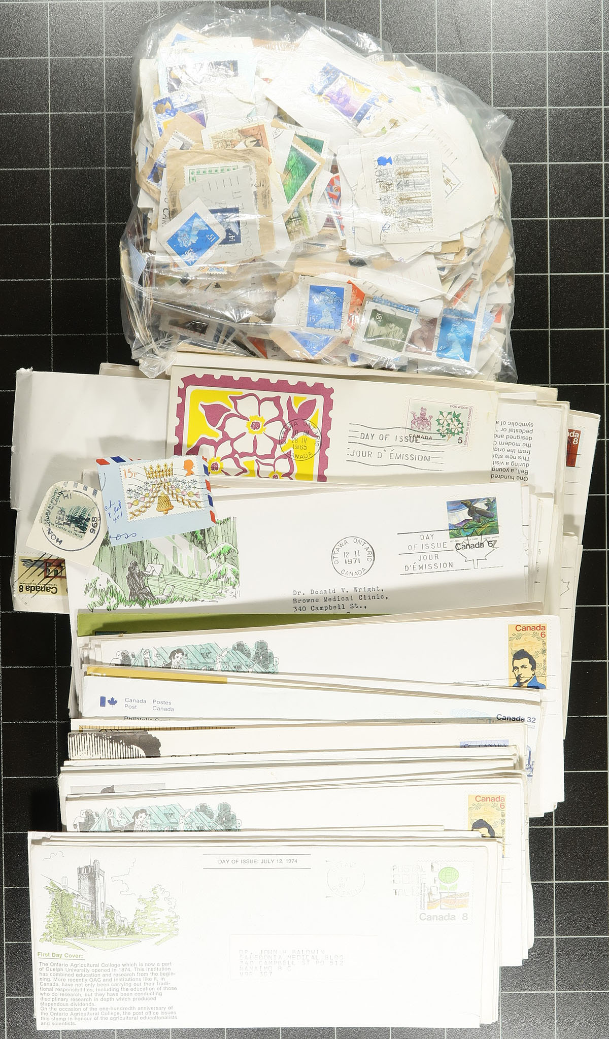 A pair of banker’s boxes filled with philatelic fun, the balance of a consignment. While there is a wide range of material here, at first glance, the strength appears to be Canada and Great Britain. There are three older Harris albums with a worldwide collection with thousands of stamps. There is a 16-page stockbook and a couple other binders. We noted 150 Canada private cachet first day covers from the 1960's-1970's (lots of "Schering" in various sizes and some "Elliot-Marion" plus more). An old accordion file has an assortment of modern worldwide, with pockets of mint Canada & GB. There are a couple of nice older tins filled with loose stamps, and one box is heavily filled with worldwide kiloware (most on paper). This is the perfect lot for the collector who wants to hunker down with a project over the winder or for a club that wants a few meetings with lots of material to pile through. Estimated value =