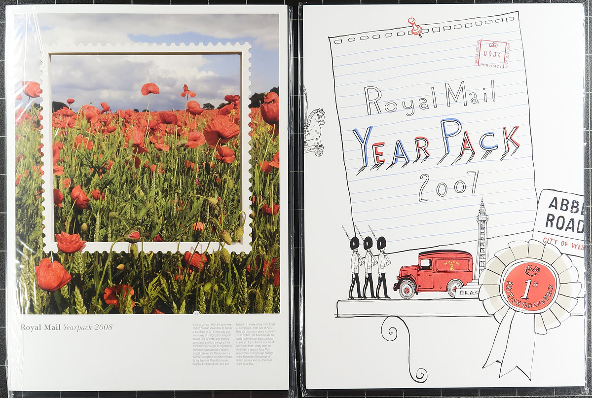 Fourteen consecutive years of Annual Folders (1995-2008), with all of the commemorative issues (and some definitives) for each given year. All are in their original packaging as received from the Post Office. The folders are in good shape and the stamps are on their original pages, complete and in perfect condition. These have better coverage than the hardbound year sets, which originally cost more but have a smaller representation of stamps. Original cost was over £250.00. As annual folders, the 2023 Stanley Gibbons Concise catalogue value is £739.50 =