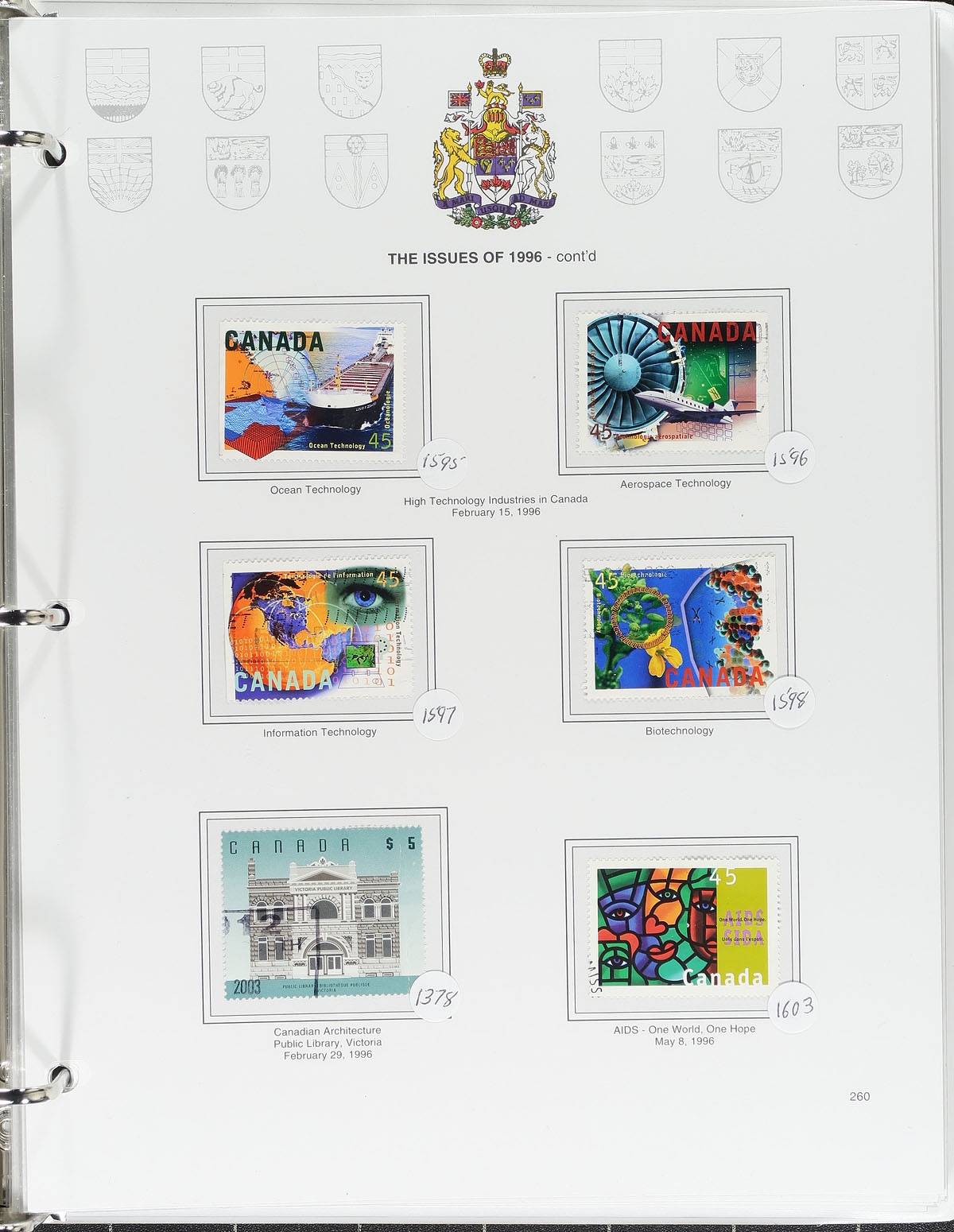 Mostly used collection from the Large Queens up to 2021 on "Northstar" CWS full colour album pages. From the Admiral era onwards the material is either quite complete or quite sparse. On pages which have stamps, the collector has put the page into a clear page protector and put Scott numbers on stickers, leaving the pages as-new. With the addition of the page protectors, the collector mercifully purchased more albums to hold this expanded size and what retails as five volumes is spread over 10 binders and 7 matching slip cases. The collection includes a couple of thousand different stamps, but the value is in the album, with the extra pieces retails at over $1600.00, and is remarkably current. Estimate =