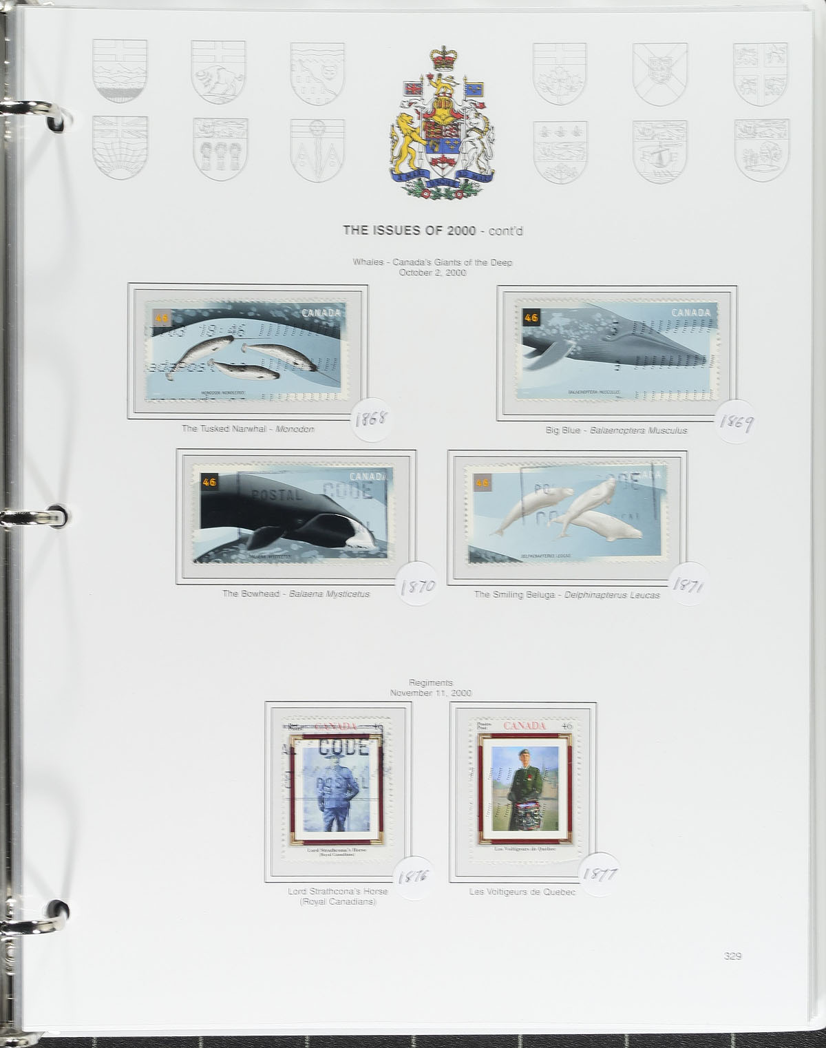 Mostly used collection from the Large Queens up to 2021 on "Northstar" CWS full colour album pages. From the Admiral era onwards the material is either quite complete or quite sparse. On pages which have stamps, the collector has put the page into a clear page protector and put Scott numbers on stickers, leaving the pages as-new. With the addition of the page protectors, the collector mercifully purchased more albums to hold this expanded size and what retails as five volumes is spread over 10 binders and 7 matching slip cases. The collection includes a couple of thousand different stamps, but the value is in the album, with the extra pieces retails at over $1600.00, and is remarkably current. Estimate =