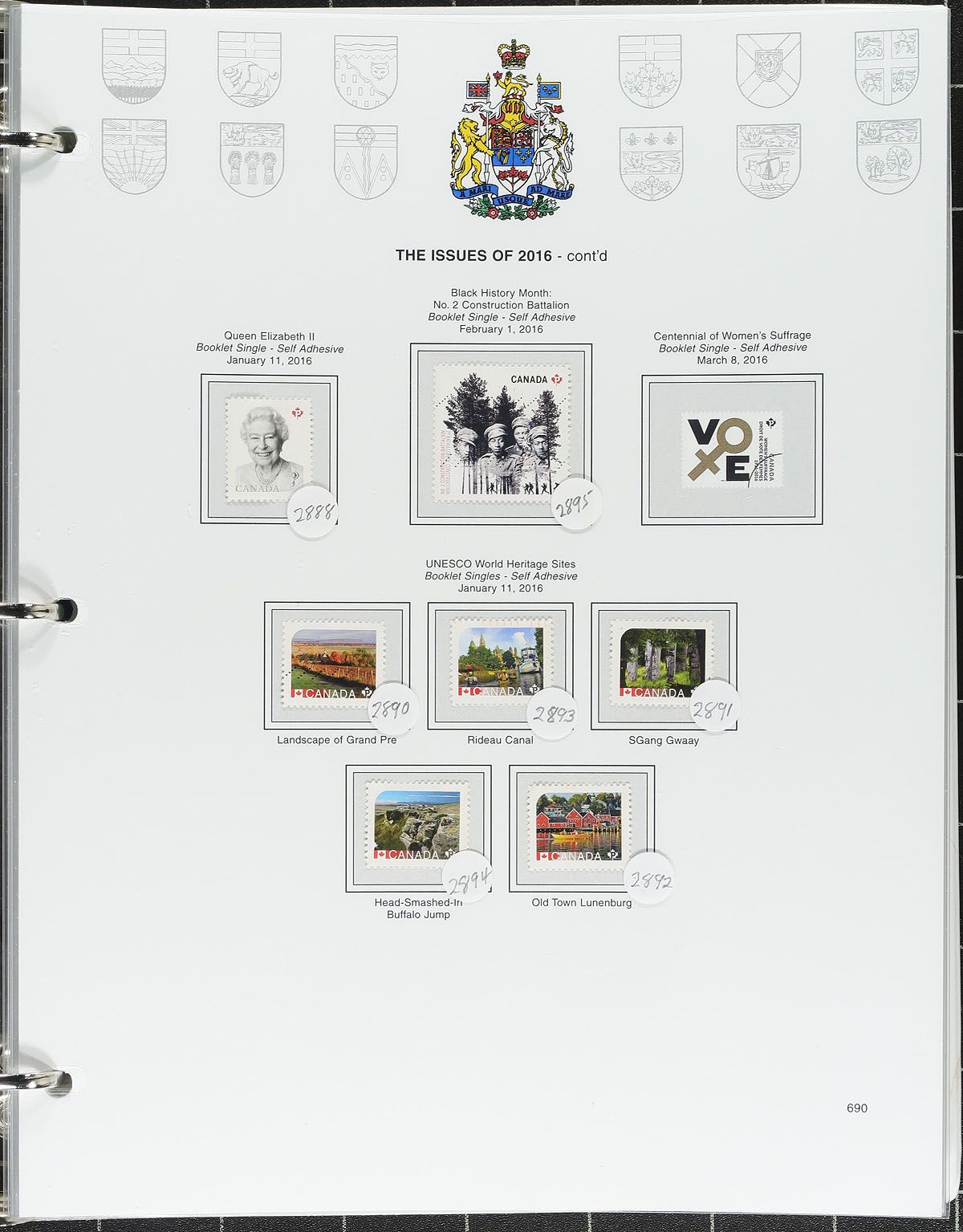 Mostly used collection from the Large Queens up to 2021 on "Northstar" CWS full colour album pages. From the Admiral era onwards the material is either quite complete or quite sparse. On pages which have stamps, the collector has put the page into a clear page protector and put Scott numbers on stickers, leaving the pages as-new. With the addition of the page protectors, the collector mercifully purchased more albums to hold this expanded size and what retails as five volumes is spread over 10 binders and 7 matching slip cases. The collection includes a couple of thousand different stamps, but the value is in the album, with the extra pieces retails at over $1600.00, and is remarkably current. Estimate =