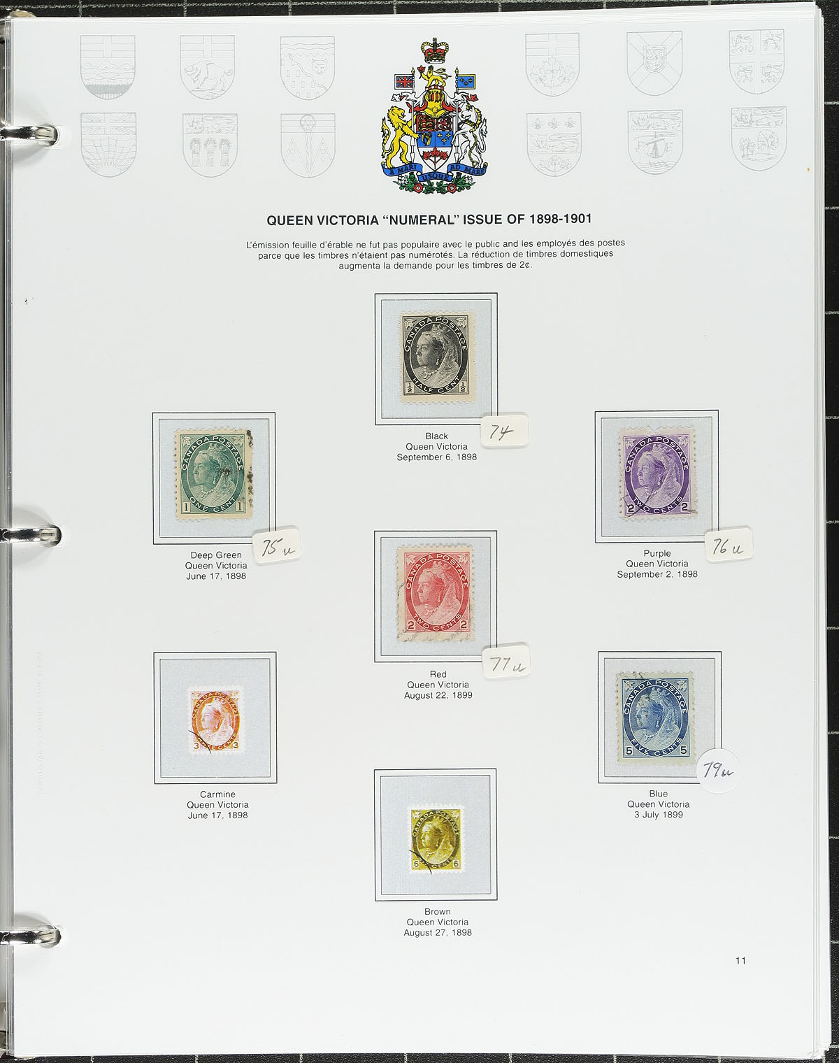 Mostly used collection from the Large Queens up to 2021 on "Northstar" CWS full colour album pages. From the Admiral era onwards the material is either quite complete or quite sparse. On pages which have stamps, the collector has put the page into a clear page protector and put Scott numbers on stickers, leaving the pages as-new. With the addition of the page protectors, the collector mercifully purchased more albums to hold this expanded size and what retails as five volumes is spread over 10 binders and 7 matching slip cases. The collection includes a couple of thousand different stamps, but the value is in the album, with the extra pieces retails at over $1600.00, and is remarkably current. Estimate =