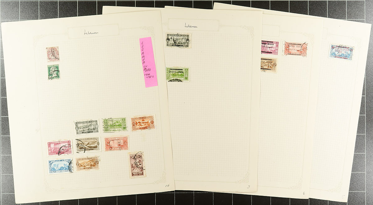 A trio of Middle Eastern countries featured in a nice mounted collection of used stamps from the 1940's to about 1978. Laid out on quadrilled pages in a near-new red Stanley Gibbons "Tower" springback binder (retails for over $50.00). The collection has been meticulously catalogued by the owner. Jordan ($250.00), Kuwait ($160.00) and Lebanon ($380.00). Condition appears to be excellent with no duplication. Total 2025 Scott US$790.00 =