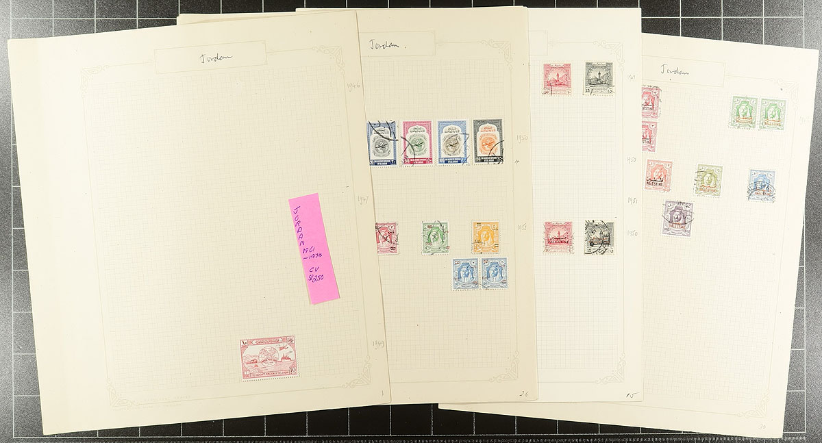 A trio of Middle Eastern countries featured in a nice mounted collection of used stamps from the 1940's to about 1978. Laid out on quadrilled pages in a near-new red Stanley Gibbons "Tower" springback binder (retails for over $50.00). The collection has been meticulously catalogued by the owner. Jordan ($250.00), Kuwait ($160.00) and Lebanon ($380.00). Condition appears to be excellent with no duplication. Total 2025 Scott US$790.00 =