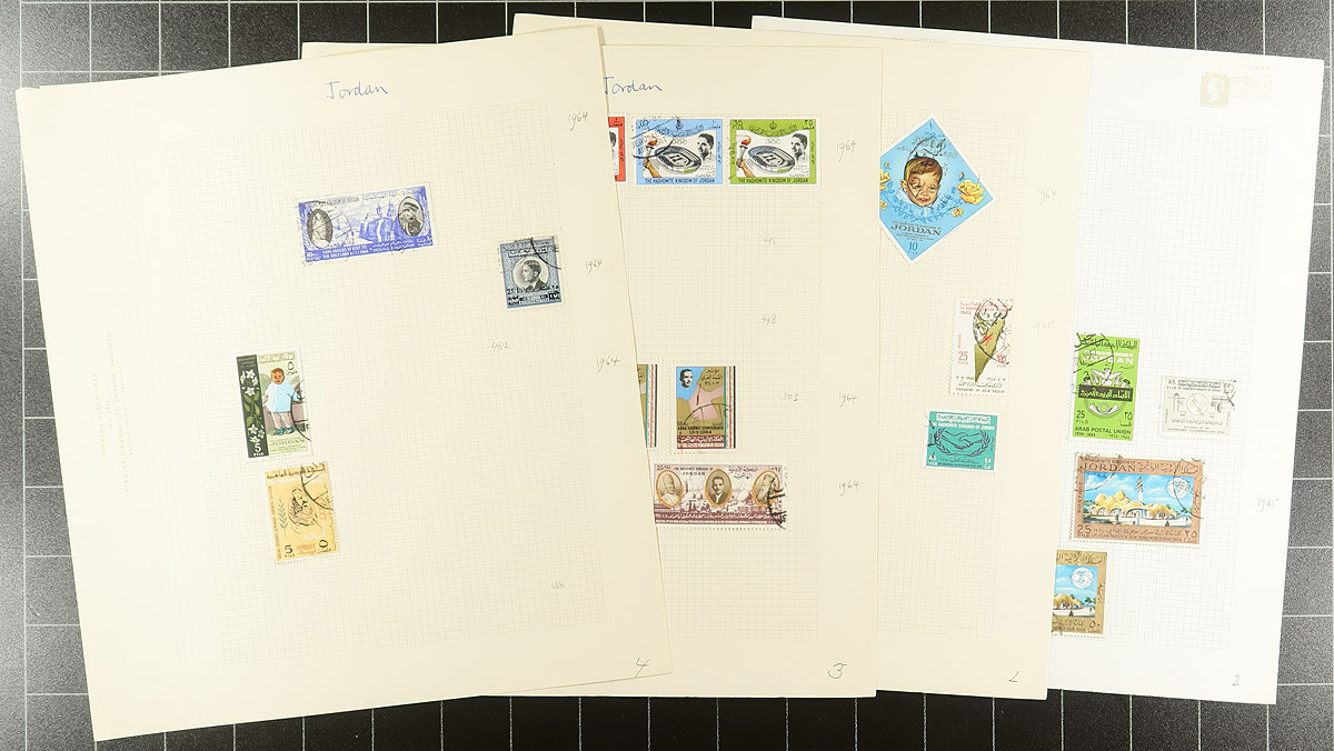A trio of Middle Eastern countries featured in a nice mounted collection of used stamps from the 1940's to about 1978. Laid out on quadrilled pages in a near-new red Stanley Gibbons "Tower" springback binder (retails for over $50.00). The collection has been meticulously catalogued by the owner. Jordan ($250.00), Kuwait ($160.00) and Lebanon ($380.00). Condition appears to be excellent with no duplication. Total 2025 Scott US$790.00 =