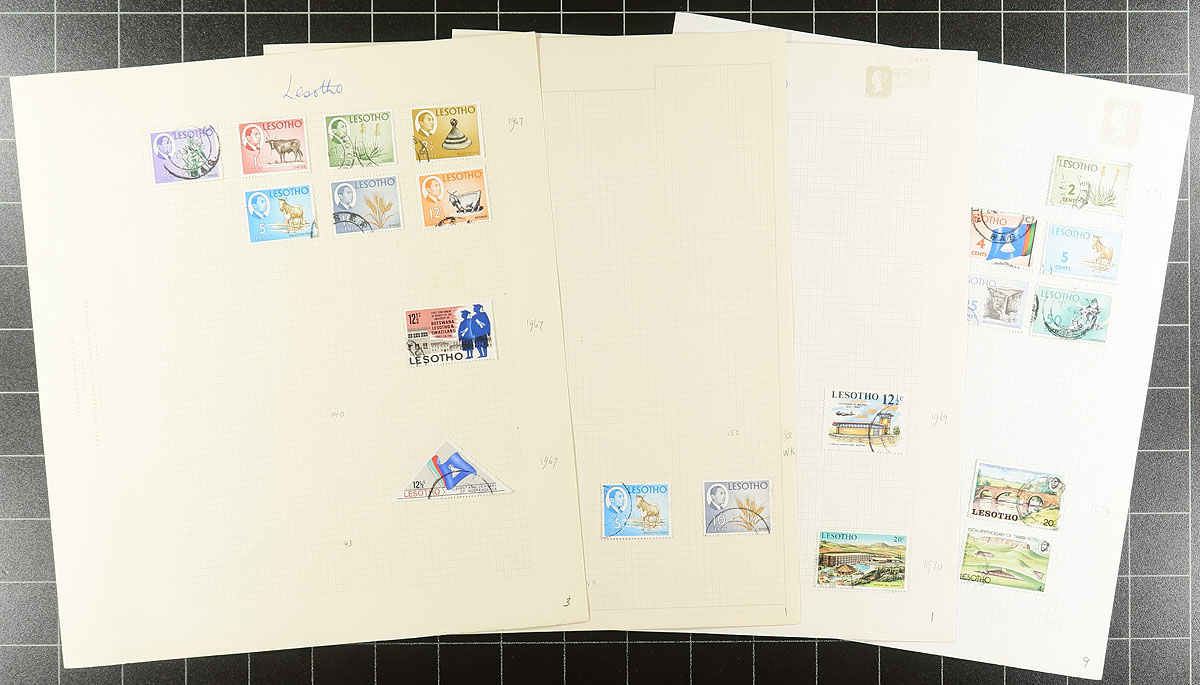 Five British Colonies (4 Africa & Jamaica) of used issues mounted on quadrilled pages and housed in an older red Stanley Gibbons "Senator" springback album. The Jamaica starts in the Victorian period, the rest with King George VI and all ends about 1978. Meticulous cataloguing by the owner: Jamaica ($226.00), Kenya, Uganda, Tanzania ($122.00), Kenya ($143.00), Lesotho ($30.00) and Malawi ($70.00). Condition appears to be excellent with little to no duplication. Total 2025 Scott US$591.00 =