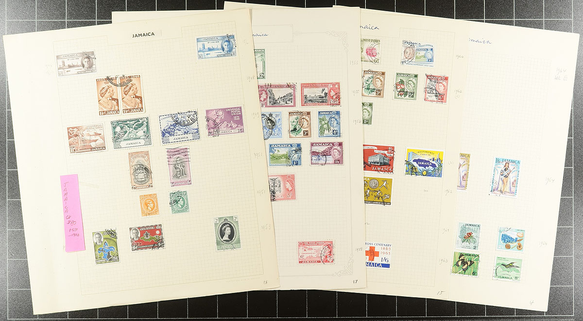 Five British Colonies (4 Africa & Jamaica) of used issues mounted on quadrilled pages and housed in an older red Stanley Gibbons "Senator" springback album. The Jamaica starts in the Victorian period, the rest with King George VI and all ends about 1978. Meticulous cataloguing by the owner: Jamaica ($226.00), Kenya, Uganda, Tanzania ($122.00), Kenya ($143.00), Lesotho ($30.00) and Malawi ($70.00). Condition appears to be excellent with little to no duplication. Total 2025 Scott US$591.00 =