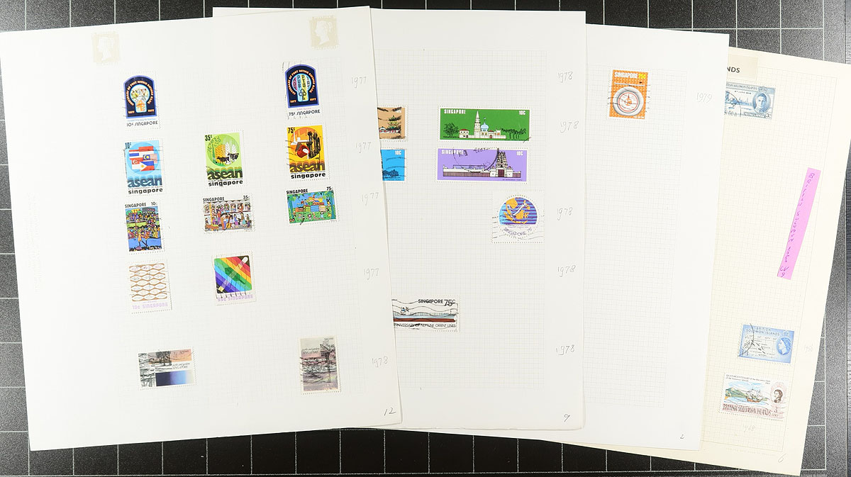 Numerous British Colonies (strong from Africa) of used issues mounted on quadrilled pages and housed in a near new red Stanley Gibbons "Tower" springback album (retails $50.00). Colonies represented include Seychelles, Sierra Leone, Singapore (about $300.00 catalogue value), Somaliland, South Rhodesia, Sri Lanka, Swaziland, Tanzania, Tonga, Trinidad and Tobago (nice Silver Wedding high value), Uganda, Zambia and another half dozen colonies with a trace of material. Most issues are from King George VI up to 1978, with the overall condition appearing excellent with little to no duplication. Total 2025 Scott US$1092.00 =