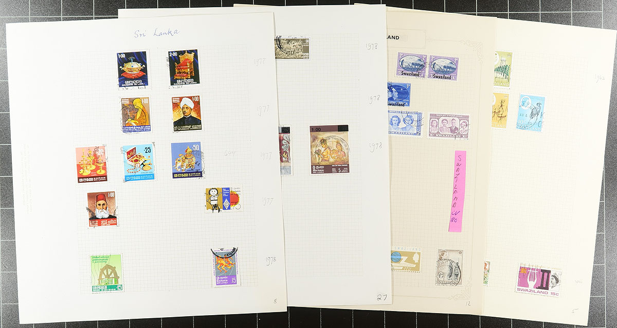 Numerous British Colonies (strong from Africa) of used issues mounted on quadrilled pages and housed in a near new red Stanley Gibbons "Tower" springback album (retails $50.00). Colonies represented include Seychelles, Sierra Leone, Singapore (about $300.00 catalogue value), Somaliland, South Rhodesia, Sri Lanka, Swaziland, Tanzania, Tonga, Trinidad and Tobago (nice Silver Wedding high value), Uganda, Zambia and another half dozen colonies with a trace of material. Most issues are from King George VI up to 1978, with the overall condition appearing excellent with little to no duplication. Total 2025 Scott US$1092.00 =