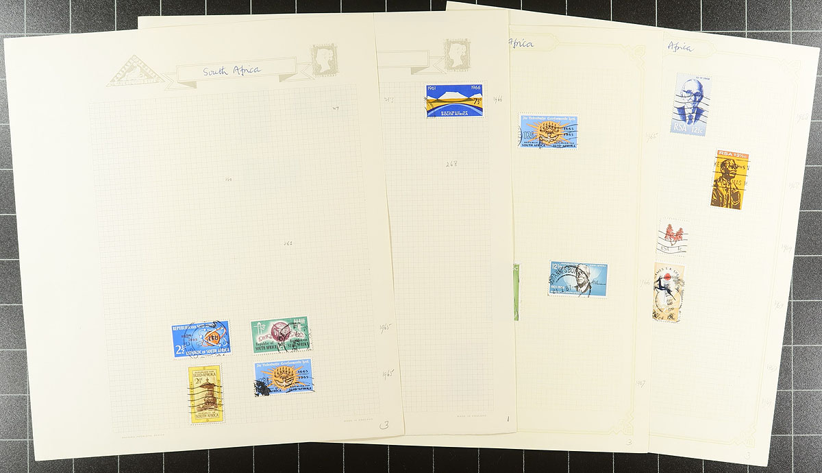 Several African colonies material from the 1940's until 1978, all mounted on quadrilled pages in a worn olive-green "Utile" springback binder. The owner has done a good job cataloguing the material, including Senegal ($30.00), Somalia ($190.00), South Africa ($245.00), Sudan ($86.00), Togo ($12.00), Tunisia ($100.00), Upper Volta (uncatalogued), Zaire ($30.00). The overall condition appears excellent with little to no duplication. The owner's conservative total 2025 Scott US$693.00 =