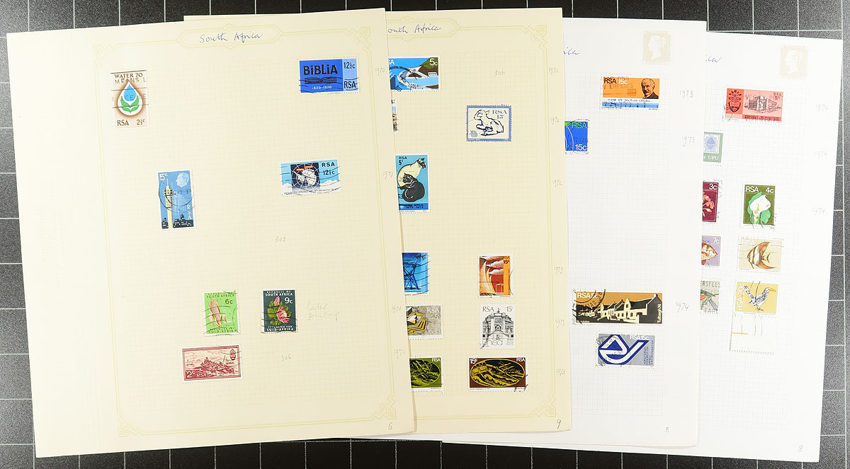 Several African colonies material from the 1940's until 1978, all mounted on quadrilled pages in a worn olive-green "Utile" springback binder. The owner has done a good job cataloguing the material, including Senegal ($30.00), Somalia ($190.00), South Africa ($245.00), Sudan ($86.00), Togo ($12.00), Tunisia ($100.00), Upper Volta (uncatalogued), Zaire ($30.00). The overall condition appears excellent with little to no duplication. The owner's conservative total 2025 Scott US$693.00 =