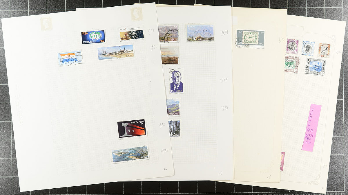 Several African colonies material from the 1940's until 1978, all mounted on quadrilled pages in a worn olive-green "Utile" springback binder. The owner has done a good job cataloguing the material, including Senegal ($30.00), Somalia ($190.00), South Africa ($245.00), Sudan ($86.00), Togo ($12.00), Tunisia ($100.00), Upper Volta (uncatalogued), Zaire ($30.00). The overall condition appears excellent with little to no duplication. The owner's conservative total 2025 Scott US$693.00 =