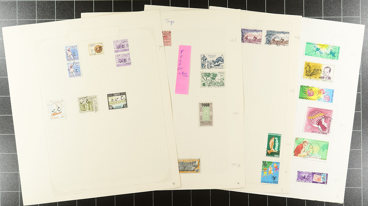 Several African colonies material from the 1940's until 1978, all mounted on quadrilled pages in a worn olive-green "Utile" springback binder. The owner has done a good job cataloguing the material, including Senegal ($30.00), Somalia ($190.00), South Africa ($245.00), Sudan ($86.00), Togo ($12.00), Tunisia ($100.00), Upper Volta (uncatalogued), Zaire ($30.00). The overall condition appears excellent with little to no duplication. The owner's conservative total 2025 Scott US$693.00 =