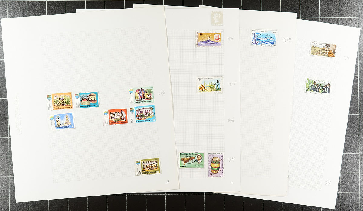 Several African colonies material from the 1940's until 1978, all mounted on quadrilled pages in a worn olive-green "Utile" springback binder. The owner has done a good job cataloguing the material, including Senegal ($30.00), Somalia ($190.00), South Africa ($245.00), Sudan ($86.00), Togo ($12.00), Tunisia ($100.00), Upper Volta (uncatalogued), Zaire ($30.00). The overall condition appears excellent with little to no duplication. The owner's conservative total 2025 Scott US$693.00 =