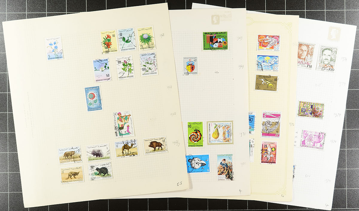 Several African colonies material from the 1940's until 1978, all mounted on quadrilled pages in a worn olive-green "Utile" springback binder. The owner has done a good job cataloguing the material, including Senegal ($30.00), Somalia ($190.00), South Africa ($245.00), Sudan ($86.00), Togo ($12.00), Tunisia ($100.00), Upper Volta (uncatalogued), Zaire ($30.00). The overall condition appears excellent with little to no duplication. The owner's conservative total 2025 Scott US$693.00 =