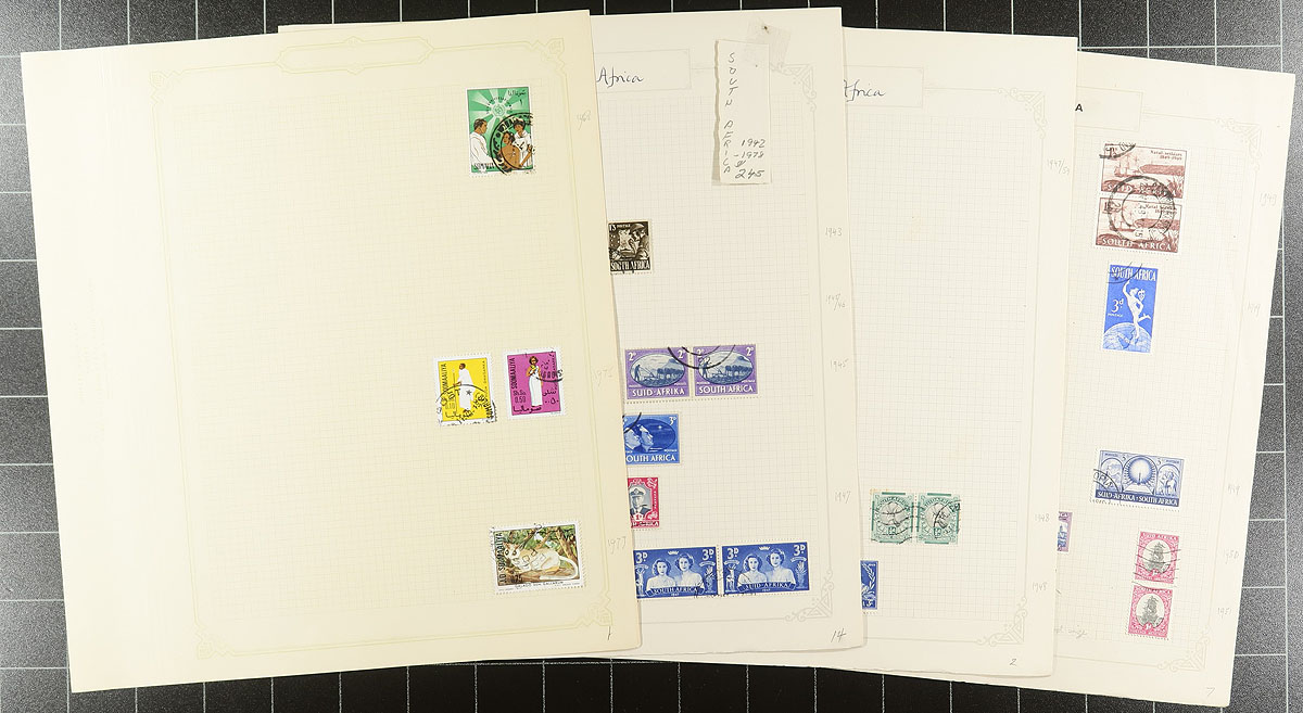 Several African colonies material from the 1940's until 1978, all mounted on quadrilled pages in a worn olive-green "Utile" springback binder. The owner has done a good job cataloguing the material, including Senegal ($30.00), Somalia ($190.00), South Africa ($245.00), Sudan ($86.00), Togo ($12.00), Tunisia ($100.00), Upper Volta (uncatalogued), Zaire ($30.00). The overall condition appears excellent with little to no duplication. The owner's conservative total 2025 Scott US$693.00 =
