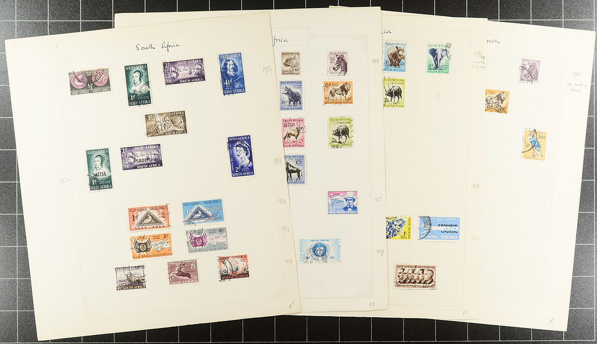 Several African colonies material from the 1940's until 1978, all mounted on quadrilled pages in a worn olive-green "Utile" springback binder. The owner has done a good job cataloguing the material, including Senegal ($30.00), Somalia ($190.00), South Africa ($245.00), Sudan ($86.00), Togo ($12.00), Tunisia ($100.00), Upper Volta (uncatalogued), Zaire ($30.00). The overall condition appears excellent with little to no duplication. The owner's conservative total 2025 Scott US$693.00 =