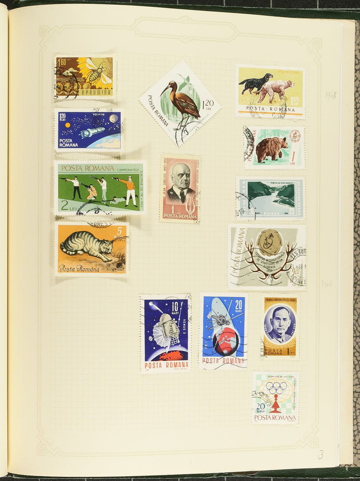 A bundle of three springback albums with used collections going back to the 19th century and then up to the mid-1970's, with Russia/USSR (catalogues $285.00), Lithuania, Czechoslovakia ($152.00) and Romania ($287.00). Condition is quite nice, and there doesn’t appear to be any duplication. One of the springback binders is a near new green Stanley Gibbons "Tower" stamp album. Total 2025 Scott US$724.00 =