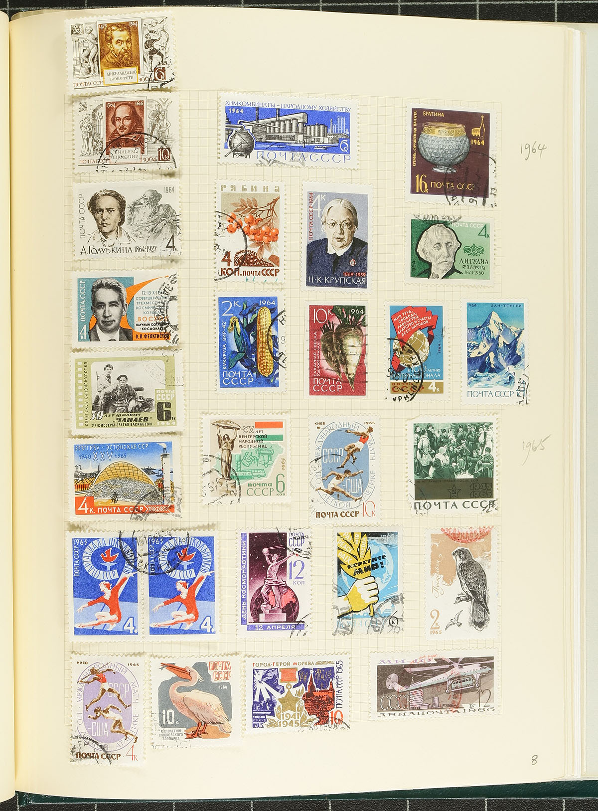 A bundle of three springback albums with used collections going back to the 19th century and then up to the mid-1970's, with Russia/USSR (catalogues $285.00), Lithuania, Czechoslovakia ($152.00) and Romania ($287.00). Condition is quite nice, and there doesn’t appear to be any duplication. One of the springback binders is a near new green Stanley Gibbons "Tower" stamp album. Total 2025 Scott US$724.00 =