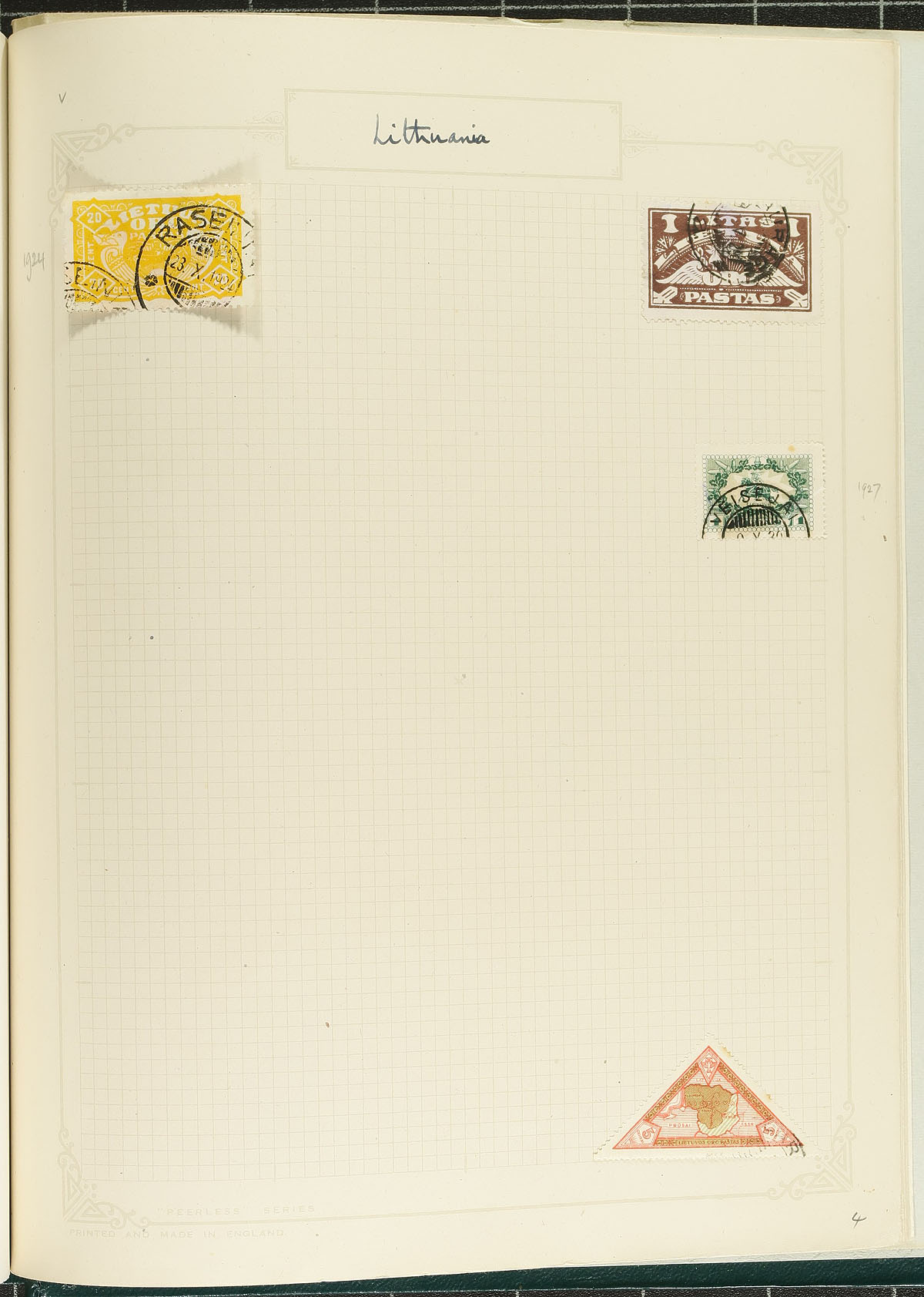 A bundle of three springback albums with used collections going back to the 19th century and then up to the mid-1970's, with Russia/USSR (catalogues $285.00), Lithuania, Czechoslovakia ($152.00) and Romania ($287.00). Condition is quite nice, and there doesn’t appear to be any duplication. One of the springback binders is a near new green Stanley Gibbons "Tower" stamp album. Total 2025 Scott US$724.00 =
