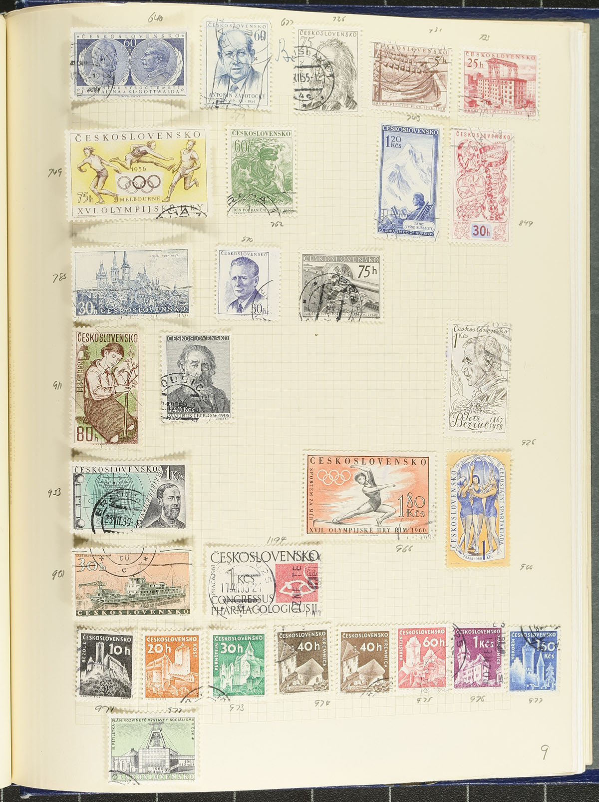 A bundle of three springback albums with used collections going back to the 19th century and then up to the mid-1970's, with Russia/USSR (catalogues $285.00), Lithuania, Czechoslovakia ($152.00) and Romania ($287.00). Condition is quite nice, and there doesn’t appear to be any duplication. One of the springback binders is a near new green Stanley Gibbons "Tower" stamp album. Total 2025 Scott US$724.00 =