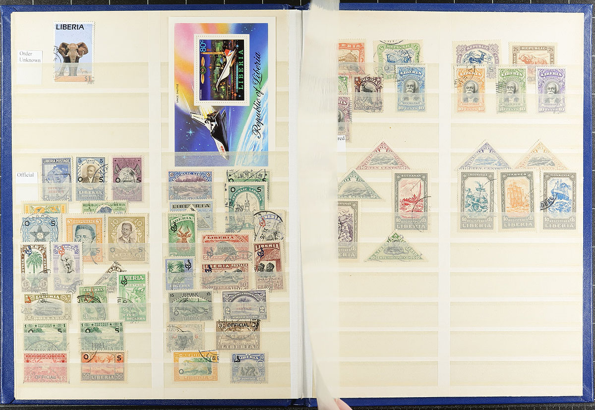 A "balance of consignment" selection of four different collections, not quite enough to make a lot individually, but as a group make for a powerful offering. Included (in no particular order) are 1) Vatican, black padded stockbook with a lifetime collection of 620 different stamps, plus one souvenir sheet from the 1929-2010 period, with both mint and used. 2) Red "Favorite Album" springback with Argentina, Bulgaria, Iran, Laos, North and South Korea with 729 different stamps neatly mounted on pages. 3) Liberia, a curated lifetime collection of mint/used/CTO with 718 different stamps and 39 miniature sheets (one of these sheets signed by the artist) in two 16-page stockbooks, with a wealth of topicals. 4) A "stamp illustrated" 16-page stockbook with Guatemala, Netherlands Indies, Indonesia and Liberia with a grand total of 737 different stamps and 2 miniature sheets. The owner has done substantial work to organize this, making these collections quite east to integrate into any existing collection. Estimate =