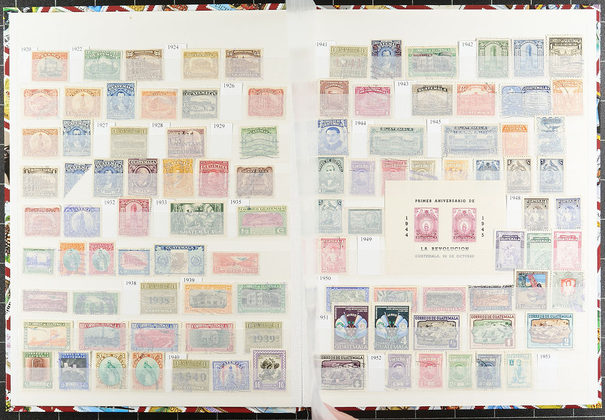 A "balance of consignment" selection of four different collections, not quite enough to make a lot individually, but as a group make for a powerful offering. Included (in no particular order) are 1) Vatican, black padded stockbook with a lifetime collection of 620 different stamps, plus one souvenir sheet from the 1929-2010 period, with both mint and used. 2) Red "Favorite Album" springback with Argentina, Bulgaria, Iran, Laos, North and South Korea with 729 different stamps neatly mounted on pages. 3) Liberia, a curated lifetime collection of mint/used/CTO with 718 different stamps and 39 miniature sheets (one of these sheets signed by the artist) in two 16-page stockbooks, with a wealth of topicals. 4) A "stamp illustrated" 16-page stockbook with Guatemala, Netherlands Indies, Indonesia and Liberia with a grand total of 737 different stamps and 2 miniature sheets. The owner has done substantial work to organize this, making these collections quite east to integrate into any existing collection. Estimate =