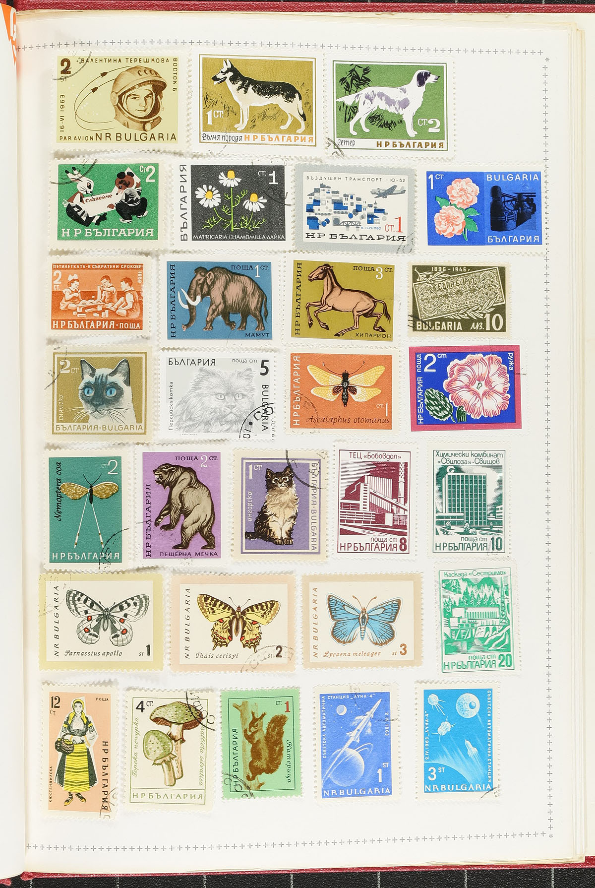 A "balance of consignment" selection of four different collections, not quite enough to make a lot individually, but as a group make for a powerful offering. Included (in no particular order) are 1) Vatican, black padded stockbook with a lifetime collection of 620 different stamps, plus one souvenir sheet from the 1929-2010 period, with both mint and used. 2) Red "Favorite Album" springback with Argentina, Bulgaria, Iran, Laos, North and South Korea with 729 different stamps neatly mounted on pages. 3) Liberia, a curated lifetime collection of mint/used/CTO with 718 different stamps and 39 miniature sheets (one of these sheets signed by the artist) in two 16-page stockbooks, with a wealth of topicals. 4) A "stamp illustrated" 16-page stockbook with Guatemala, Netherlands Indies, Indonesia and Liberia with a grand total of 737 different stamps and 2 miniature sheets. The owner has done substantial work to organize this, making these collections quite east to integrate into any existing collection. Estimate =