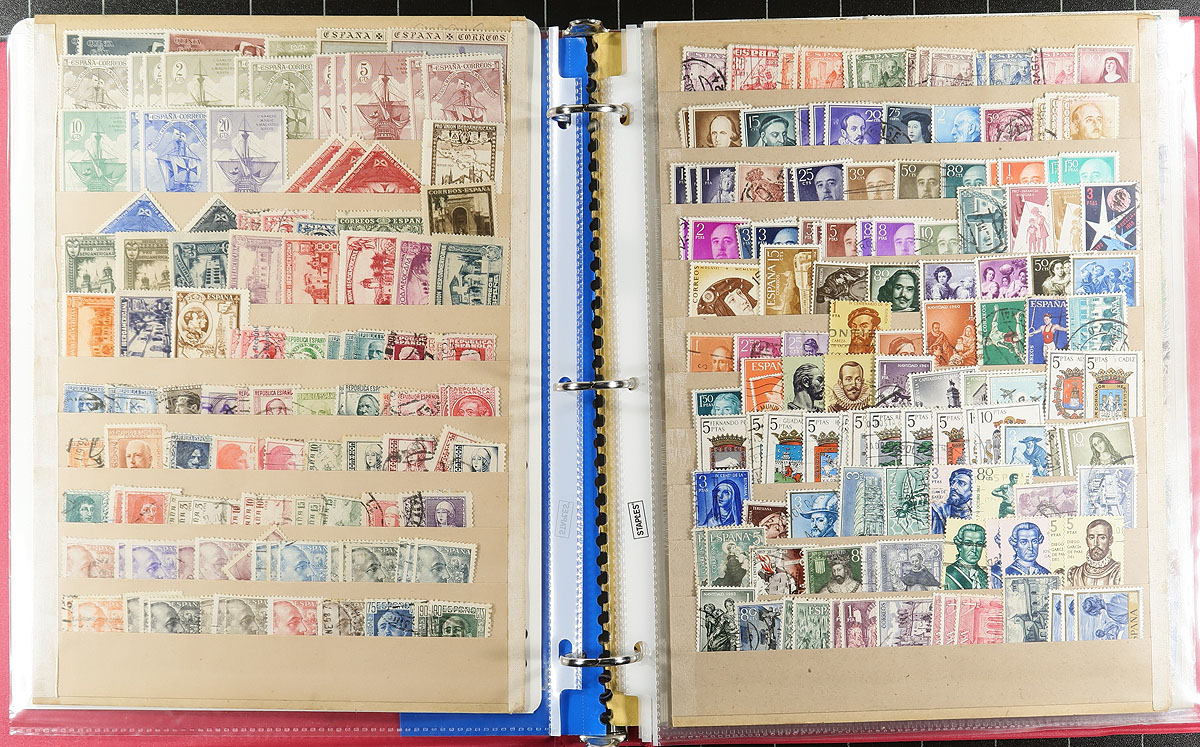 European strong holding, in four distinct portions. A combination group of four different collections, all from the same consignor with an eye for detail. Portion A includes Monaco, with 532 stamps (466 different) and 2 miniature sheets, mostly mint from 1891-1977 on stockpages. Portion B is Ireland 1922-2009 in a 16-page Unisafe stockbook with 811 stamps (403 different), mostly used. Portion C is Belgium and Colonies 1865-1998 with Belgium having 579 different, and "Colonies" having 201 different, mostly used on stockpages in a binder. Lastly, Portion D comprises of Portugal and Spain on pages within a binder, with Portugal having 421 stamps (280 different) 1855-2001 mostly used including "back of the book" and Spain having 734 stamps (520 different) mostly used from 1862-2008). A very clean offering. Estimate =