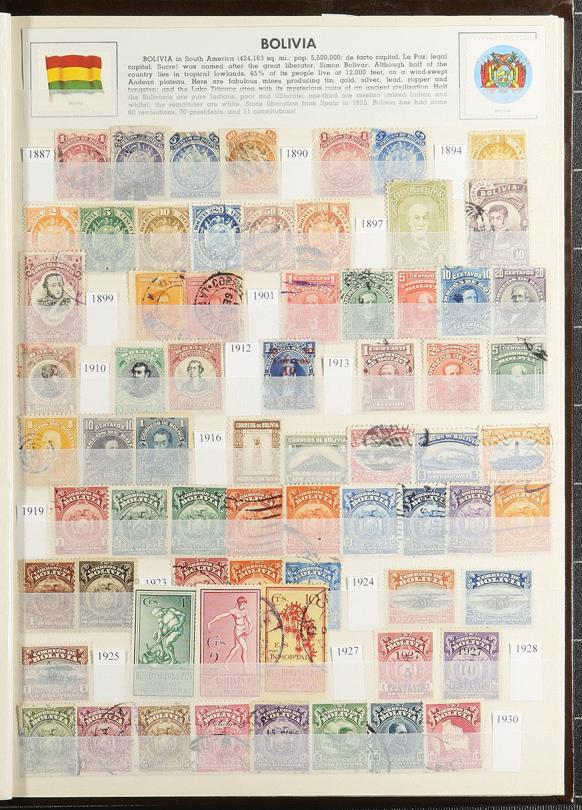 Peru & Bolivia Holdings. A duo of Uni-Safe brand 16-page stockbooks, containing (respectively) Peru and Bolivia. The Peruvian stockbook contains a lifetime collection of 740 different mostly used from 1858-2010. The Bolivian stockbook contains a lifetime collection of 706 different stamps, plus two miniature sheets, mint and (mostly) used 1887-2007. Meticulously organized, with two premium stockbooks! Estimate =