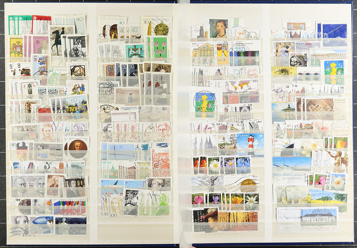 A Germany strong collector’s holding, with a bit of Austria, organized into three individual albums and distinct collections. In no particular order, the lot includes 1) Germany (plus a few earlier "states" 1867-2014 collection of 1386 different stamps, plus 8 covers/postcards and 2 miniature sheets on pages within a binder, mostly used. 2) Germany, West Germany, Berlin & DDR 1872-2024, mostly used, with 2559 stamps (1543 different) plus 2 miniature sheets within a 16-page Unisafe brand stockbook. 3) Austria and Germany, in a 16-page Lighthouse stockbook (stockbook has seen better days) with Austria 1863-1979 with 1003 stamps (562 different) plus 4 miniature sheets, and Germany (Berlin 1960-1978, Germany 2006-2010, DDR 1950-1959) plus Bavaria, Bohemia and Moravia, Saar, Schleswig and Wurttemberg and OCCUPATION issues of Ukraine, Belgium and Morocco with a total of 1803 stamps (1175 different). A very useful holding, exceptionally organized. Estimate =
