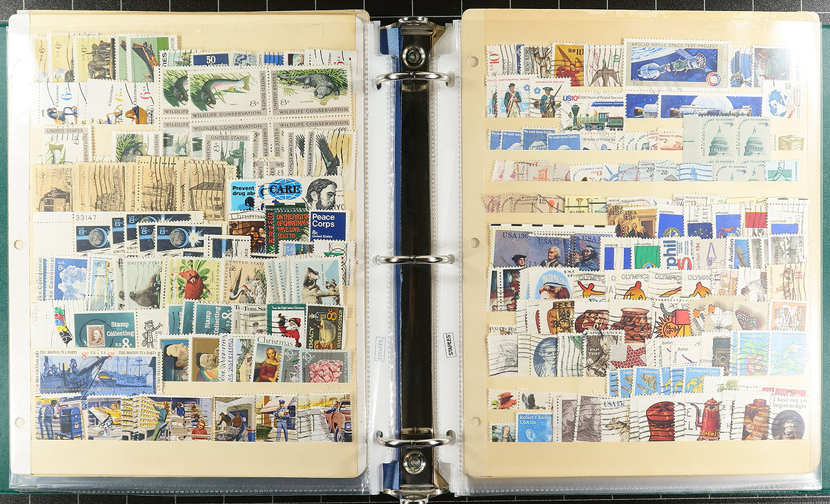 A three-part collector’s holding that includes USA, Marshall Islands, Palau and (somewhat out of place) Romania! Neatly arranged and identified by the owner in three distinct sections / albums. Section A consists of US, Marshall Islands and Palau , with USA having 649 different stamps, mostly used 1870-1993. Section B consists of about 1560 different (2519 in total) stamps, mainly used including early facsimiles, blocks, precancels, "back of the book" and even one of the old-time "US Presidents" label sheet 1869-2017 (expect mixed condition in the earlier material). Lastly, section C is a 32-page Lighthouse stockbook (these retail for over $50 alone) with USA and Romania, with USA having 1956 different stamps, including two booklets, 25x mint and used blocks and 2x Hawaii, and then Romania with 596 different, mostly used and CTO from 1880-1980. A useful holding! Estimate =