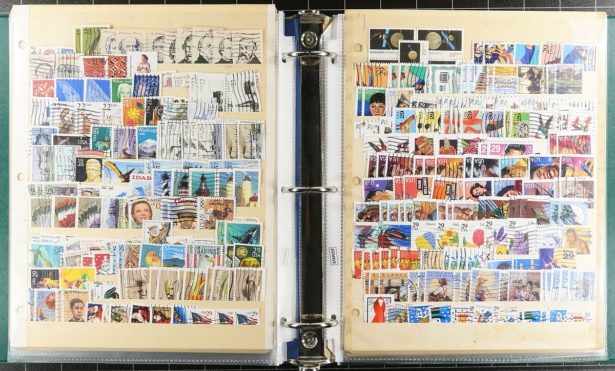 A three-part collector’s holding that includes USA, Marshall Islands, Palau and (somewhat out of place) Romania! Neatly arranged and identified by the owner in three distinct sections / albums. Section A consists of US, Marshall Islands and Palau , with USA having 649 different stamps, mostly used 1870-1993. Section B consists of about 1560 different (2519 in total) stamps, mainly used including early facsimiles, blocks, precancels, "back of the book" and even one of the old-time "US Presidents" label sheet 1869-2017 (expect mixed condition in the earlier material). Lastly, section C is a 32-page Lighthouse stockbook (these retail for over $50 alone) with USA and Romania, with USA having 1956 different stamps, including two booklets, 25x mint and used blocks and 2x Hawaii, and then Romania with 596 different, mostly used and CTO from 1880-1980. A useful holding! Estimate =