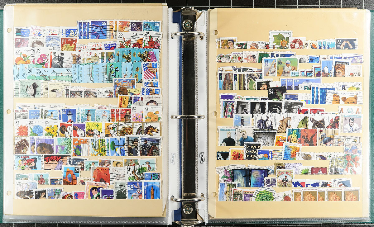 A three-part collector’s holding that includes USA, Marshall Islands, Palau and (somewhat out of place) Romania! Neatly arranged and identified by the owner in three distinct sections / albums. Section A consists of US, Marshall Islands and Palau , with USA having 649 different stamps, mostly used 1870-1993. Section B consists of about 1560 different (2519 in total) stamps, mainly used including early facsimiles, blocks, precancels, "back of the book" and even one of the old-time "US Presidents" label sheet 1869-2017 (expect mixed condition in the earlier material). Lastly, section C is a 32-page Lighthouse stockbook (these retail for over $50 alone) with USA and Romania, with USA having 1956 different stamps, including two booklets, 25x mint and used blocks and 2x Hawaii, and then Romania with 596 different, mostly used and CTO from 1880-1980. A useful holding! Estimate =