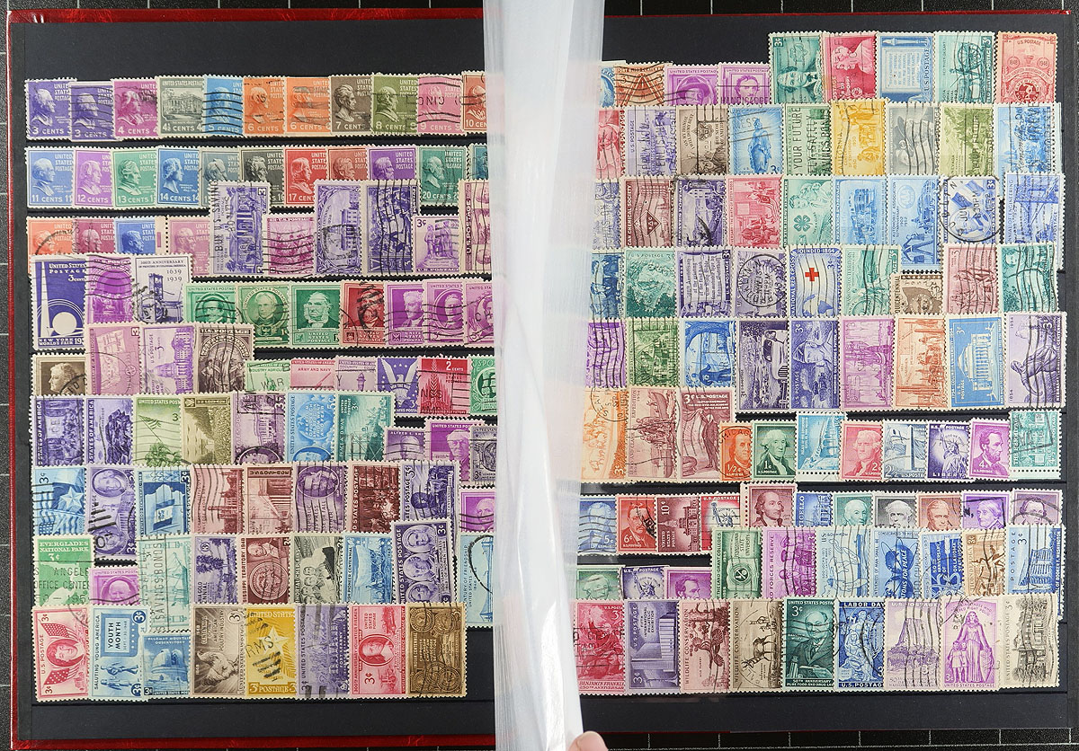 A three-part collector’s holding that includes USA, Marshall Islands, Palau and (somewhat out of place) Romania! Neatly arranged and identified by the owner in three distinct sections / albums. Section A consists of US, Marshall Islands and Palau , with USA having 649 different stamps, mostly used 1870-1993. Section B consists of about 1560 different (2519 in total) stamps, mainly used including early facsimiles, blocks, precancels, "back of the book" and even one of the old-time "US Presidents" label sheet 1869-2017 (expect mixed condition in the earlier material). Lastly, section C is a 32-page Lighthouse stockbook (these retail for over $50 alone) with USA and Romania, with USA having 1956 different stamps, including two booklets, 25x mint and used blocks and 2x Hawaii, and then Romania with 596 different, mostly used and CTO from 1880-1980. A useful holding! Estimate =