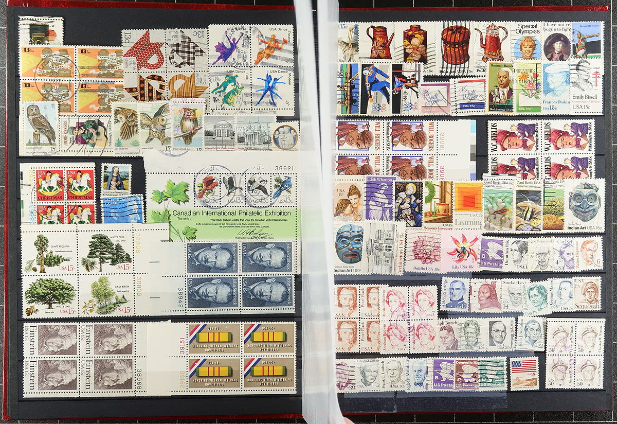 A three-part collector’s holding that includes USA, Marshall Islands, Palau and (somewhat out of place) Romania! Neatly arranged and identified by the owner in three distinct sections / albums. Section A consists of US, Marshall Islands and Palau , with USA having 649 different stamps, mostly used 1870-1993. Section B consists of about 1560 different (2519 in total) stamps, mainly used including early facsimiles, blocks, precancels, "back of the book" and even one of the old-time "US Presidents" label sheet 1869-2017 (expect mixed condition in the earlier material). Lastly, section C is a 32-page Lighthouse stockbook (these retail for over $50 alone) with USA and Romania, with USA having 1956 different stamps, including two booklets, 25x mint and used blocks and 2x Hawaii, and then Romania with 596 different, mostly used and CTO from 1880-1980. A useful holding! Estimate =
